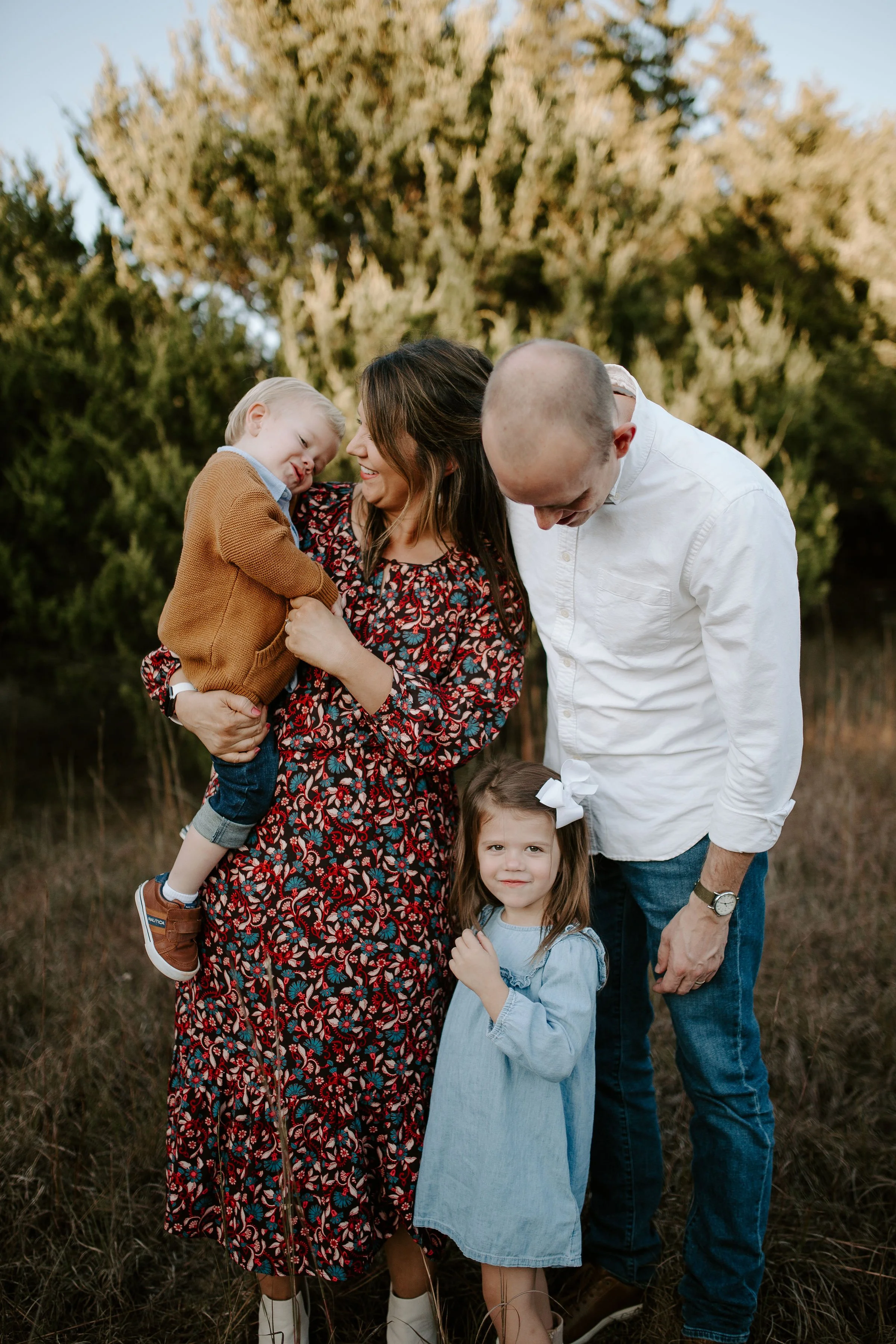 You may lean towards keeping everyone in solids, but don’t be afraid of throwing in patterns or textures (think knit or leather!). They key here is that less is more. Keep it simple like a floral dress or a cardigan over a button up. This is a great way to add character and dimension to your photos.